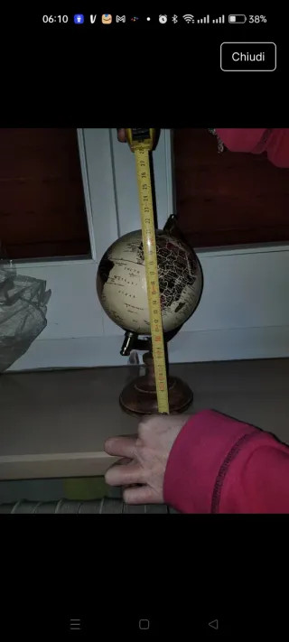 Mappamondo decorativo Maison du Monde. Un elemento d'arredo che aggiunge un tocco di stile. - Base in legno scuro. - Dettagli geografici visibili.