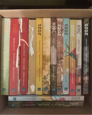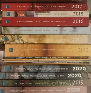 Lotti di cataloghi Thun, con copertine dedicate alle stagioni e agli anni. - Anni inclusi: 2013, 2014, 2016, 2018, 2019 (due copie), 2020 (due copie), 2021 (due copie), 2022. - Copertine con design stagionali: Primavera/Estate, Autunno/Inverno. - Testo in italiano, tedesco e inglese.