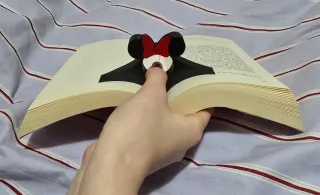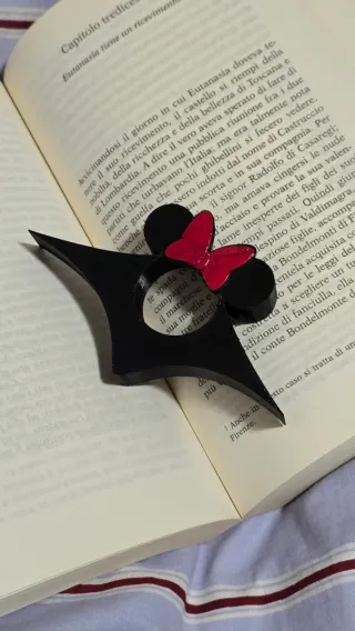Un simpatico segnapagina a forma di Minnie Mouse, perfetto per tenere il segno nel tuo libro preferito. - Design iconico di Minnie Mouse con fiocco rosso. - Struttura nera che si adatta alle pagine.