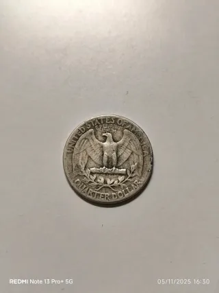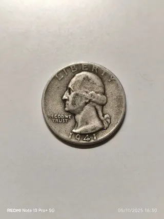 Moneta americana in argento del 1941. - Dritto: Ritratto di George Washington. - Rovescio: Aquila americana.