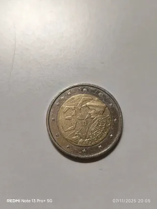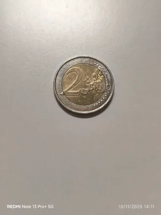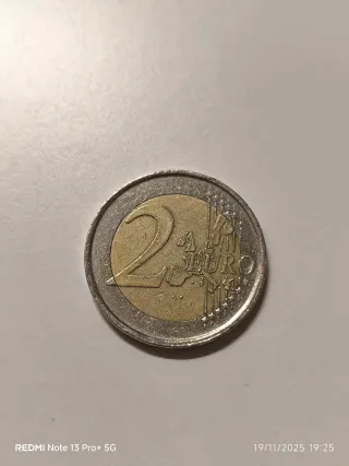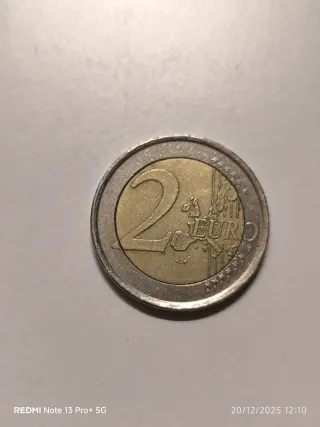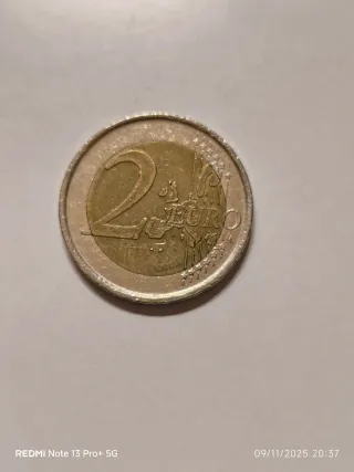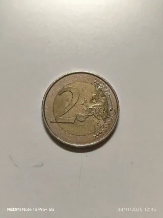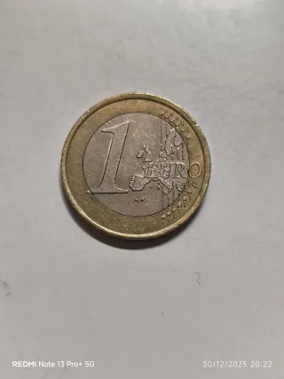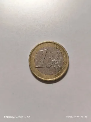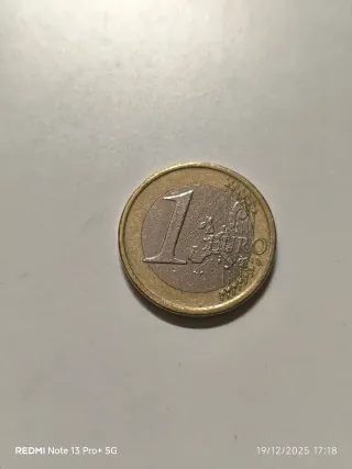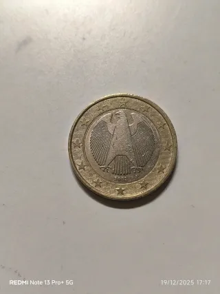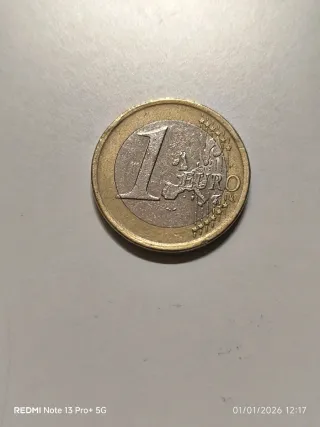 Moneta da 1 Euro della Germania, coniata nel 2002. Presenta un interessante bordo decentrato. - Dritto: Aquila federale. - Rovescio: Mappa dell'Europa. - Anno di coniazione: 2002.