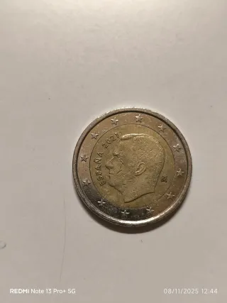 Moneta da 2 Euro della Spagna, coniata nel 1999. - Dritto: Ritratto del Re Juan Carlos I. - Rovescio: Mappa dell'Europa con il valore nominale.