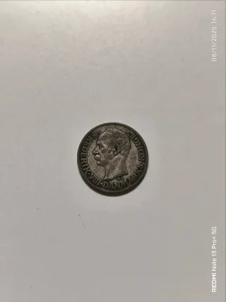 Moneta antica danese da 10 ore, coniata nel 1907. - Dettaglio del valore 10 ORE al centro. - Anno 1907 inciso. - Design circolare con motivi decorativi.