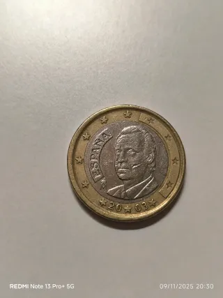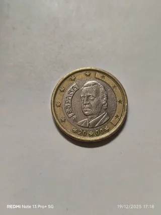 Moneta da 1 Euro della Spagna, coniata nell'anno 2000. - Dritto: Ritratto di Re Juan Carlos I. - Rovescio: Mappa dell'Europa con le stelle dell'Unione Europea.