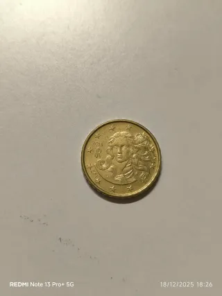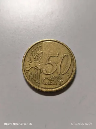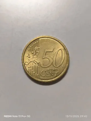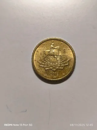 Moneta da 50 centesimi di euro coniata nel 2019. - Dritto: raffigurante un cavaliere su un cavallo. - Rovescio: con il valore nominale e la mappa dell'Europa.