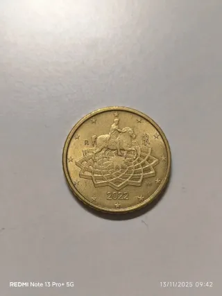 Moneta da 50 centesimi di euro coniata in Italia nell'anno 2022. - Dritto: Raffigurazione di Costantinopoli di Il Vittoriale degli Italiani di Gardone Riviera. - Rovescio: Valore nominale, mappa dell'Europa, 12 stelle.