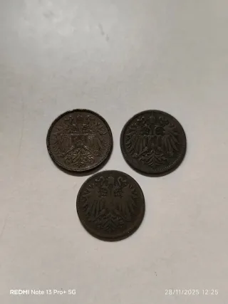 3 Monete Austria 2 Centesimi Bronzo 1897