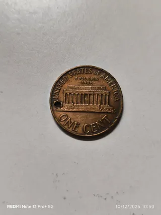 Moneta da un centesimo di dollaro americano, anno 1968. - Dritto: effigie di Abraham Lincoln. - Rovescio: Lincoln Memorial. - Anno di conio: 1968.