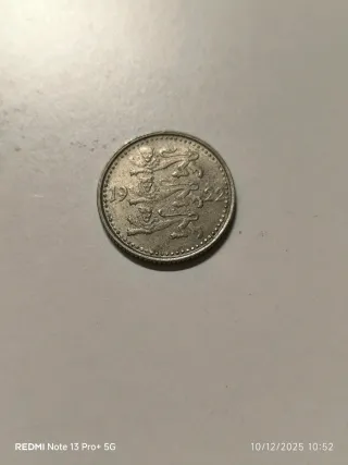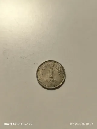 Moneta da 1 Marco Estone del 1922. - Dritto: EESTI VABARIIK (Repubblica Estone) con al centro il numero 1. - Rovescio: 1 MARK con un simbolo decorativo sotto.