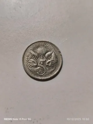 Moneta da 5 centesimi australiana, coniata nel 1976. - Dritto: raffigurante un echidna. - Rovescio: numero 5.