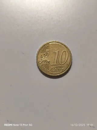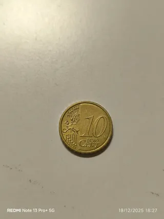 Moneta da 10 centesimi di euro, coniata in Francia nel 1999. - Dritto: raffigurante Marianne, simbolo della Repubblica Francese. - Rovescio: valore nominale e mappa dell'Europa. - Anno di coniazione: 1999.