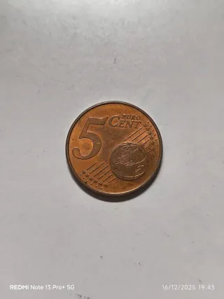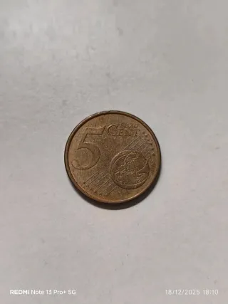 Moneta da 5 centesimi di euro coniata in Francia nell'anno 2000. - Dritto: raffigurante Marianne, simbolo della Repubblica Francese. - Rovescio: valore nominale e mappa dell'Europa. - Anno di coniazione: 2000.