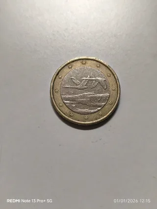 Moneta da 1 Euro della Finlandia, coniata nel 2005 con la presenza di materiale in eccesso - Design raffigurante cigni in volo. - Anno di conio: 2005.