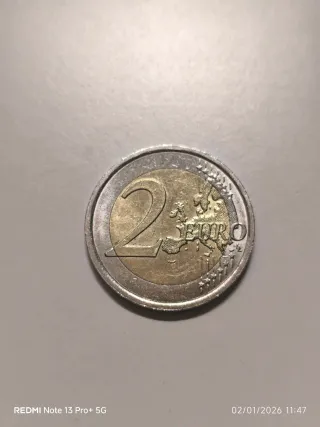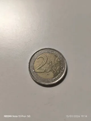 Moneta da 2 Euro della Francia, coniata nell'anno 2000. - Dritto: Albero della vita con le lettere RF (République Française). - Rovescio: Valore nominale e mappa dell'Europa. - Anno di coniazione: 2000.