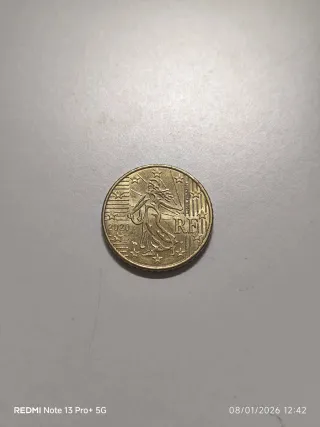 Moneta da 50 centesimi di Euro, coniata in Francia nell'anno 2019. Raffigura Marianne, simbolo della Repubblica Francese. - Dritto: Marianne con berretto frigio, circondata da stelle. - Rovescio: Valore nominale e mappa dell'Europa.