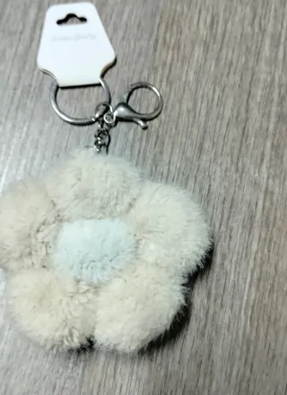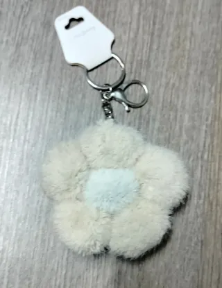 Grazioso portachiavi a forma di fiore, perfetto per aggiungere un tocco di stile. - Morbido al tatto. - Colore bianco e beige
