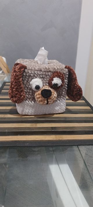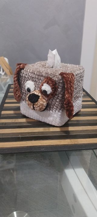 Carino copri scatola per fazzoletti di carta a forma di cane realizzato all'uncinetto. - Design a forma di cane. - Realizzato all'uncinetto con ciniglia