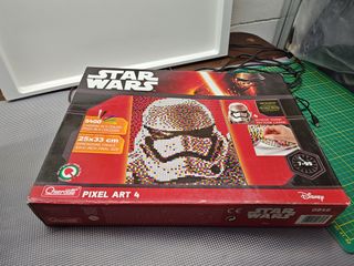 Con Pixel Art creare gli straordinari ritratti dei personaggi di Star Wars, con i famosi chiodini Quercetti, è alla portata di tutti, grandi e piccini. I chiodini sono solo in 6 colori, ma se si guardano da una certa distanza si miscelano come per magia in migliaia di nuovi colori e l'immagine che hai appena composto sembra una vera fotografia. Con i più alti standard qualitativi e di sicurezza, può anche essere considerato uno straordinario oggetto d'arredamento per decorare con classe gli ambienti di casa.