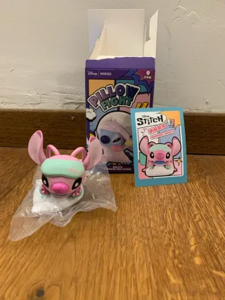 Figura sorpresa de Stitch de la colección Pillow Fight de MINISO. - Personaggio: Angel. - Colezzione: Pillow Fight. - Marca: MINISO. - Tipo: Figura sorpresa. - Include carta collezionabile.