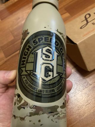 Borraccia Liberty Bottle in edizione limitata con design HSGI. - Design mimetico. - Logo HIGH SPEED GEAR e PERFORMANCE LOAD BEARING EQUIPMENT.