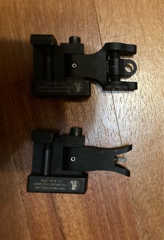 Set di tacche di mira Troy in metallo, originali del 2009 (ho i messaggi che ne confermano l’originalità), quella anteriore presenta una piccola bozzatura, poco percettibile e che non influenza funzionamento o estetica. Pezzi rari, non di facile reperibilità.