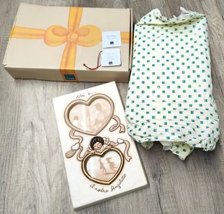 Vendo portafoto originale Thun “Noi e… il nostro angioletto” (modello con doppio cuore), in ceramica decorata a mano, dimensioni circa 18 x 29 cm. Cornice con due riquadri a forma di cuore per foto, decorata con angioletto centrale e scritta “Noi e… il nostro angioletto”. Può essere sia da appoggio (accessorio incluso) che da appendere a parete, grazie ai fori e ganci sul retro. Completo di scatola e imballo originali. Ideale regalo per nascita, battesimo o cameretta bimbi. Prezzo nuovo in negozio 70/80 euro circa Oggetto nuovo con scatola originale e certificato di autenticità Thun.