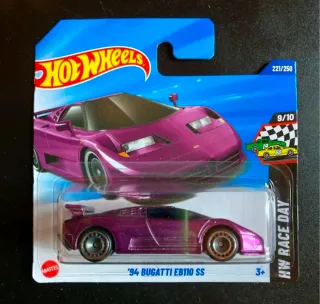 Modellino Hot Wheels della Bugatti EB110 SS del 1994. - Colore viola metallizzato. - Parte della serie HW Race Day. - Scala 1:64.