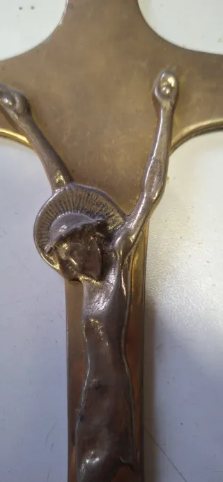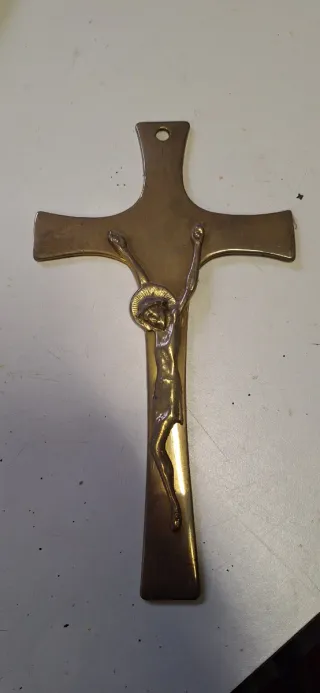 Bellissimo crocefisso in ottone, un pezzo decorativo con una finitura lucida. - Materiale: Ottone - Design: Crocefisso con figura di Cristo - Finitura: Lucida