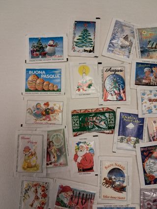 Lotto di oltre 40 bustine miste zucchero da collezione integre, immagini feste Natale e Pasqua ecc alcune doppie, tipologia e condizioni come da foto.