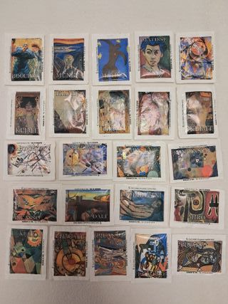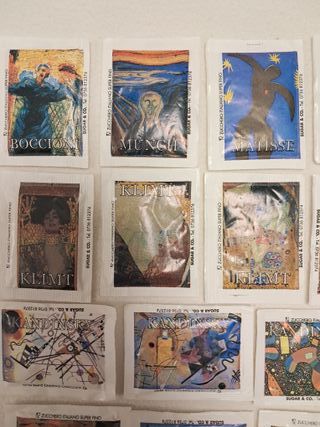 Lotto di oltre 20 bustine zucchero da collezione tema dipinti quadri opere d'arte pittori artisti famosi, Picasso Munch Klimt Kandinsky Modigliani Miro' Dali' Matisse, tipologia e condizioni come da foto allegate. - Opere di artisti come Klimt, Picasso, Matisse, Kandinsky, Boccion, Munch, Dalí, Modigliani, Miró, Chagall. - Perfette per collezionisti o per dare un tocco artistico alla colazione.