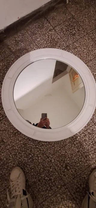 Specchio rotondo vintage Carrara e Matta. - Cornice bianca. - Design circolare.