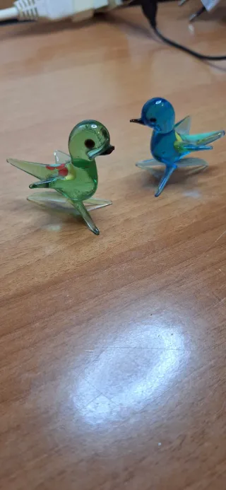Deliziosi uccellini in vetro soffiato, perfetti per decorare. - Uccellino verde con dettagli rossi. - Uccellino blu con ali trasparenti. - vedi foto becco e coda