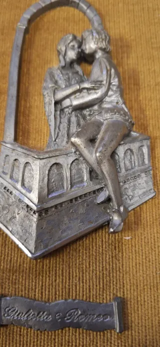 Raffigurazione in peltro di Giulietta e Romeo. - Scena romantica. - Montata su tela. - Cornice in legno.