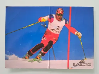 Cartolina con autografo dello sciatore campione del mondo anni 90 Alberto Tomba datata 1993, la cartolina presenta piega al centro, in condizioni come da foto