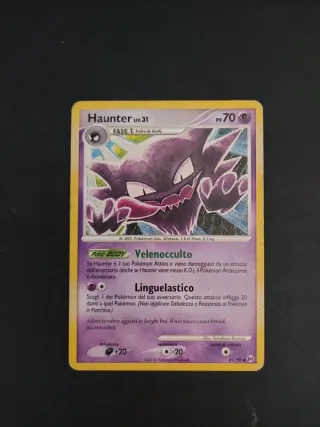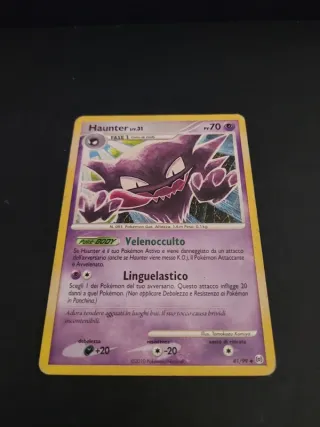 📦 Precedenza al ritiro a mano zona Imola ✉️ Spedisco dai 10 € in su (Bartolini o InPost preferiti, ma vanno bene anche altri corrieri) Ho tante altre carte, quindi per non perdervi nulla vi consiglio di seguirmi :) 🔎 Guarda attentamente le foto per la condizione della carta Carta Pokémon originale Haunter, numero 41/99, dal set Arceus, lingua italiana. N. Pokédex: 093 Fase: 1 – Evoluzione da Gastly Rarità: Non Comune Illustratore: Tomokazu Komiya ©2010 Pokémon / Nintendo 🛡 Protetta con sleeve e imballaggio sicuro. #Pokemon #CartePokemon #Haunter #Arceus #PokemonITA #PokemonImola #PokemonTCG #CollezionismoPokemon