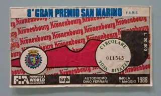 Biglietto circolare curva Tosa Rivazza Gran premio formula 1 F1 San Marino autodromo Dino Ferrari di Imola 1 maggio 1988, in condizioni ottime come da foto