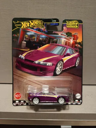 Modellino Hot Wheels Premium della Acura Integra GSR. - Serie Boulevard. - Colore viola metallizzato con dettagli gialli. - Scala 1:64. - Materiale: metallo e plastica.