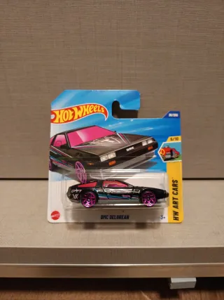 Modellino Hot Wheels DMC DeLorean della serie HW Art Cars. - Colore nero con dettagli fucsia e azzurri. - Ruote fucsia. - Scala 1:64.