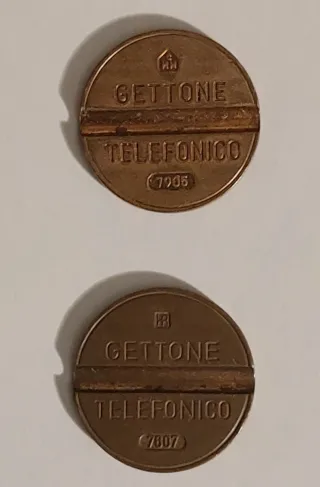 N. 2 gettoni telefonici. Gettone telefonico con numero 7905. Gettone telefonico con numero 7607.