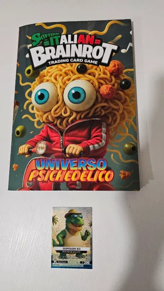 Collezione di carte SKIFIDOL ITALIAN BRAINROT completa di: - Album con copertina. - 1 carta rara "Boomerauro Rex". - 97 carte varie della collezione - 62 doppie utili per essere scambiate