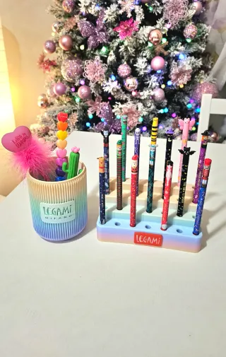 Set di 2 portapenne: -1 espositore a ripiani per penne cancellabili Legami -1 barattolo con logo Legami per penne o accessori di qualsiasi tipo Penne NON incluse.