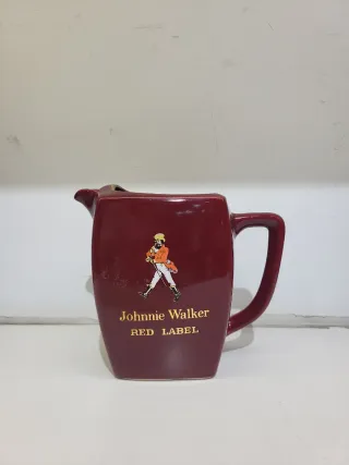 Caraffa in ceramica con l'iconico design di Johnnie Walker Red Label. Presenta il logo di Johnnie Walker e l'etichetta Red Label. Dettaglio del camminatore e Established 1820 alla base. Piccola marca poco visibile sul bordo superiore (vedi foto)
