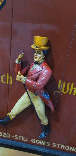 Quadro in legno vintage Johnnie Walker con figura in rilievo di uomo che cammina, risalente alla fine degli anni '70 circa. NON TRATTABILE ❌️
