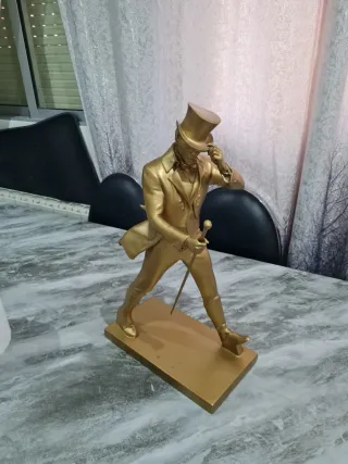 Statua decorativa dell'iconico Johnnie Walker. - Finitura dorata. - Dettaglio di bastone e cilindro. - Base rettangolare dorata.
