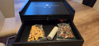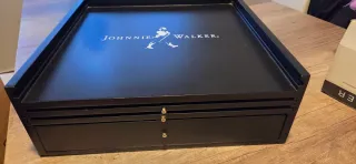 Scatola da collezione elegante di Johnnie Walker, perfetta per gli amanti del marchio. Design in nero. Include l'iconico logo del caminante.