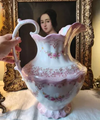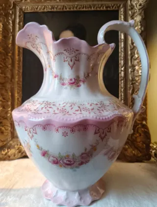 Grande e maestosa!!! Si tratta di una splendida Brocca , di grande formato, W.H. Grindley, un pezzo che cattura l'attenzione grazie alla sua silhouette mossa e alle delicate decorazioni floreali. Immaginatela su una credenza piena di fiori freschi! In base al marchio questo'oggetto è databile tra il 1891 e il 1914. Altezza circa 33 cm Larghi circa 28 cm