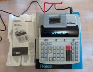 Texas Instruments TI-5630 Calcolatrice Elettronica 12 Cifre. Usato ben tenuto, nel suo imballo originale con libretto di istruzioni. La calcolatrice no trasporta la carta di stampa, la parte elettronica funziona, da sistemare.