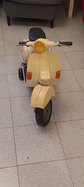 Vespa Peg Perego vintage, modello V050, un classico giocattolo. - Colore giallo. - Design d'epoca. - Ruote stabilizzatrici. Funzionante, con qualche segno di usura e senza batteria.