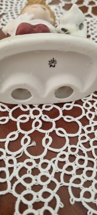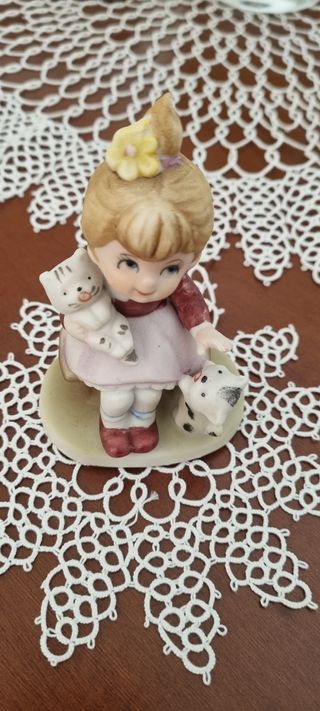Deliziosa statuetta in ceramica Capodimonte raffigurante una bambina con due gattini. Un pezzo decorativo che aggiunge un tocco di dolcezza. - Dettagli finemente lavorati. - Dipinta a mano. - Base ovale.