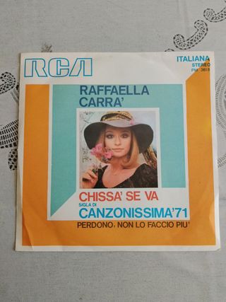 Disco in vinile 45 giri di Raffaella Carrà. - Lato A: Chissà Se Va - Lato B: Perdono, Non Lo Faccio Più - Sigla di Canzonissima '71 - Etichetta RCA Italiana - Codice PM 3618